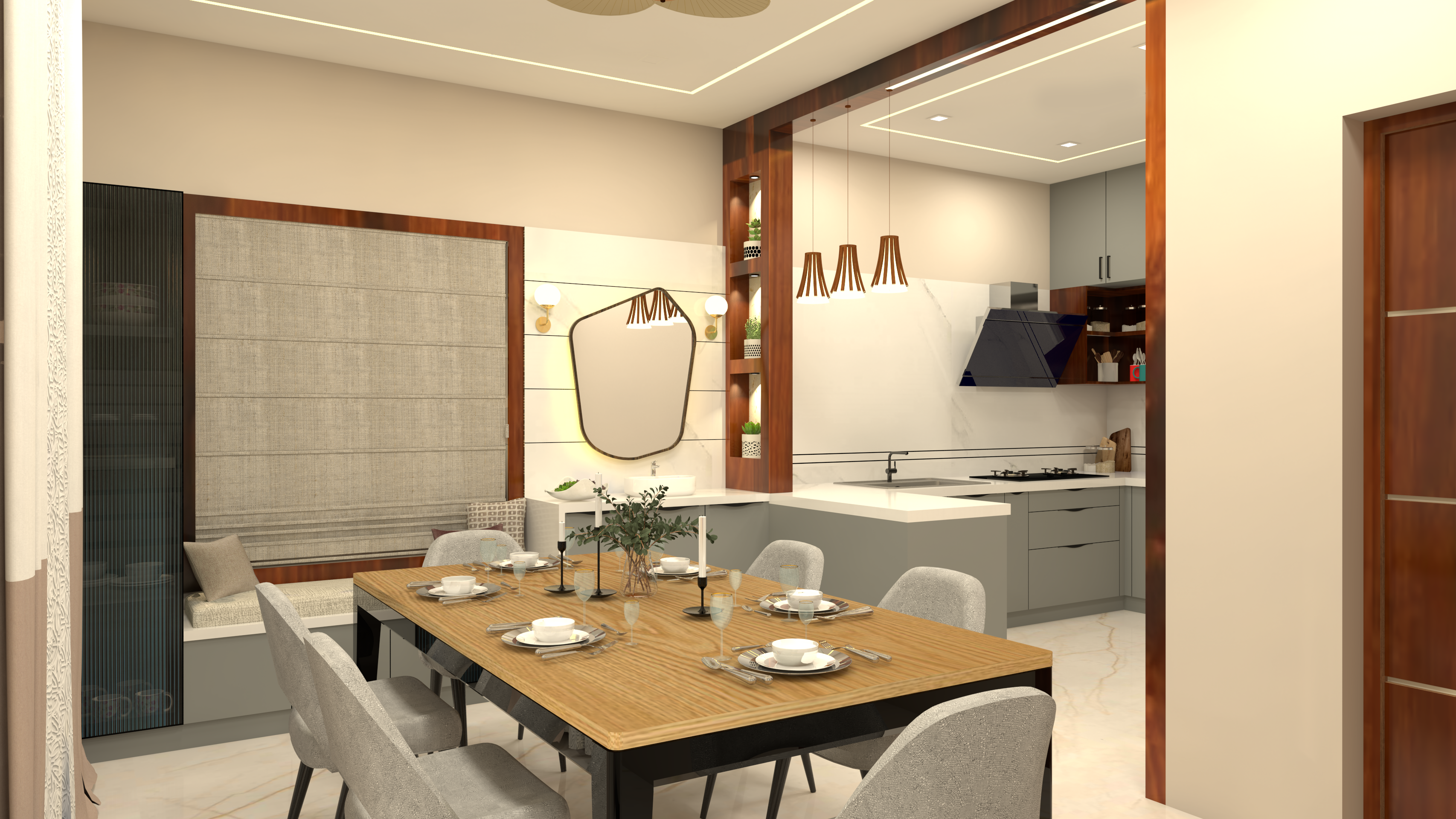 Living and Dining Room An open concept living room Visually, it is stunning and offers new perspective to the idea of living cum dining concept. The furniture and lighting design works well together to create that cool, cosmopolitan look.